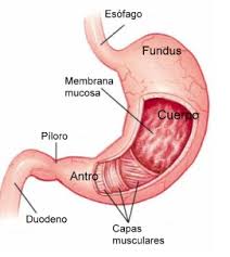 · Los tejidos del estómago, que son tres, la capa mucosa, la muscular y la serosa.